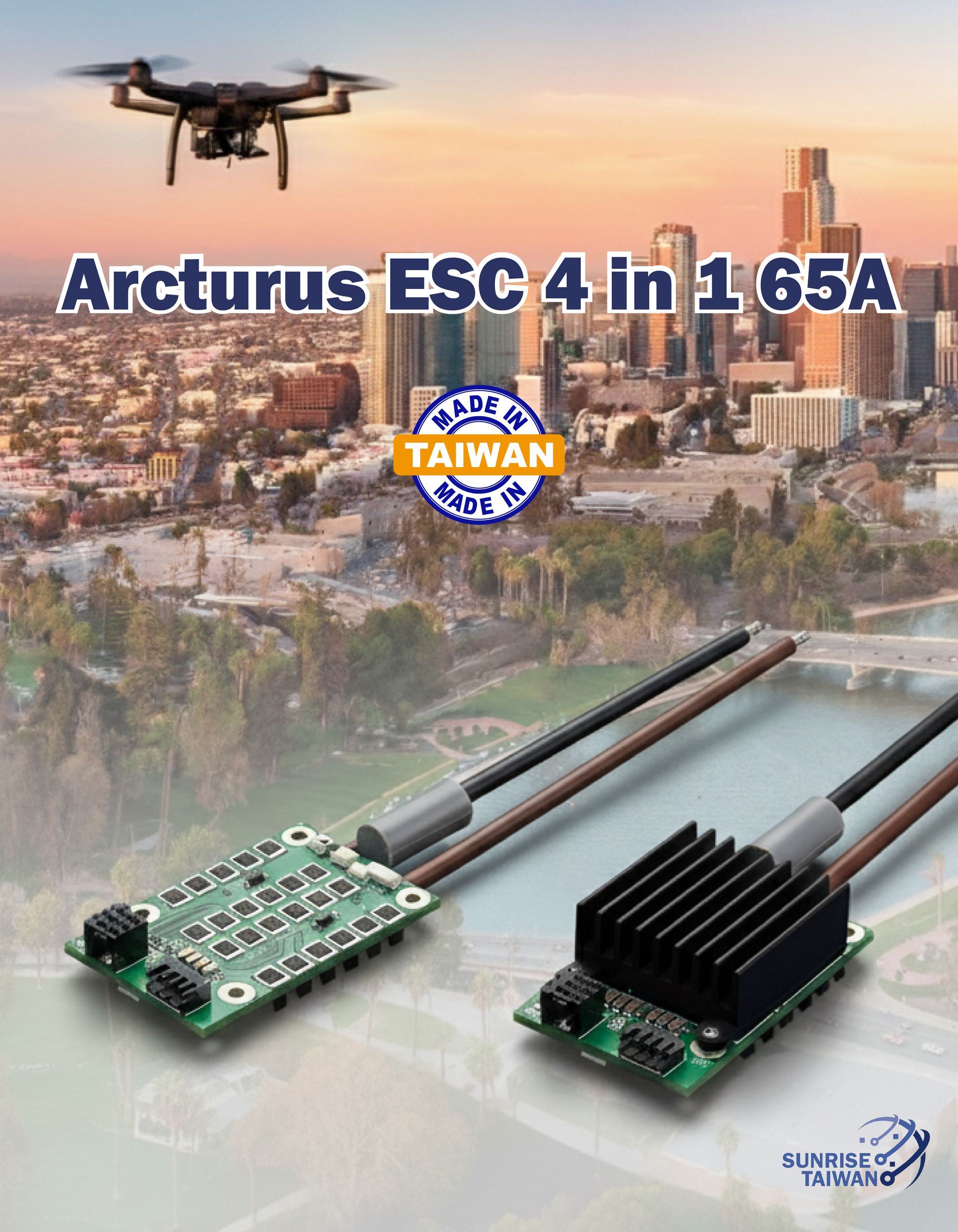 The Arcturus ESC 4 in 1 65A is a high-efficiency Electronic Speed Controller designed specifically for FPV and small-sized drones, delivering the perfect balance of robust power, advanced control, and unparalleled supply chain integrity. Built upon 15 years of specialized experience in high-reliability power electronics and compliant with NDAA requirements, this ESC ensures secure, stable, and high-performance flight across diverse critical applications. Key Features Arcturus ESC 4 in 1 65A architecture – compact (66x42x11mm), lightweight (30g) integration with powerful 65A continuous output. Advanced Propulsion Control – utilizing Field-Oriented Control (FOC) and Space Vector Modulation (SVM) for superior efficiency and precision. Sensorless Design Reliability – enhanced robustness by eliminating physical sensors prone to vibration and mechanical failure. Industrial-Grade Thermal Management – double-sided cooling FETs and temperature protection for sustained demanding loads. NDAA Compliant & Taiwan Origin – secure, "Red-Free" supply chain for defense and government contracts. Technical Specifications Current: 65A (rated) / 80A (peak) per motor Voltage: 3S-6S Li-Po Form Factor: PCBA (4-in-1) Input: CAN/PWM 🌍 Why Choose the Arcturus ESC 4 in 1 65A? With its robust 65A continuous current capacity, advanced FOC/SVM motor control, and critical "Made in Taiwan" NDAA compliance, the Arcturus ESC 4 in 1 65A is the trusted choice for drone manufacturers and integrators seeking high-reliability components for defense, government, and industrial UAVs. Whether you’re building long-endurance inspection drones or precision FPV systems, this ESC delivers consistent performance, operational safety, and crucial supply chain security.
