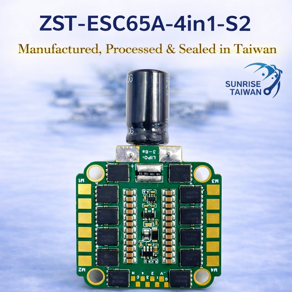 Component origin hindering your procurement effort? This importance of origin traceability and compliance will continue in 2026 as a key issue as both sides of the Atlantic have either begun or rolled out new regulations to strengthen their critical component supply chain. The American Security Drone Act (ASDA) went into full effect on December 22, 2025, since then ritical drone components have been added to the covered List ; while several EU member states have already restricted Chinese-manufactured drones in defense and public security sectors. The ZST-ESC65A-4in1-S2 including passive components is designed and manufactured, sealed entirely in Taiwan, built with AM32 firmware, thermal and over-current protection and NDAA compliant